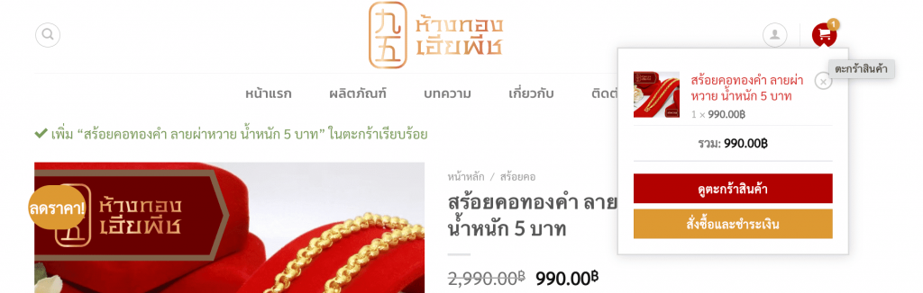 เมื่อคลิก”หยิบใส่ตะกร้า”สินค้าจะลงไปอยู่ในตะกร้า