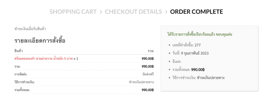 6. คำสั่งซื้อสำเร็จ